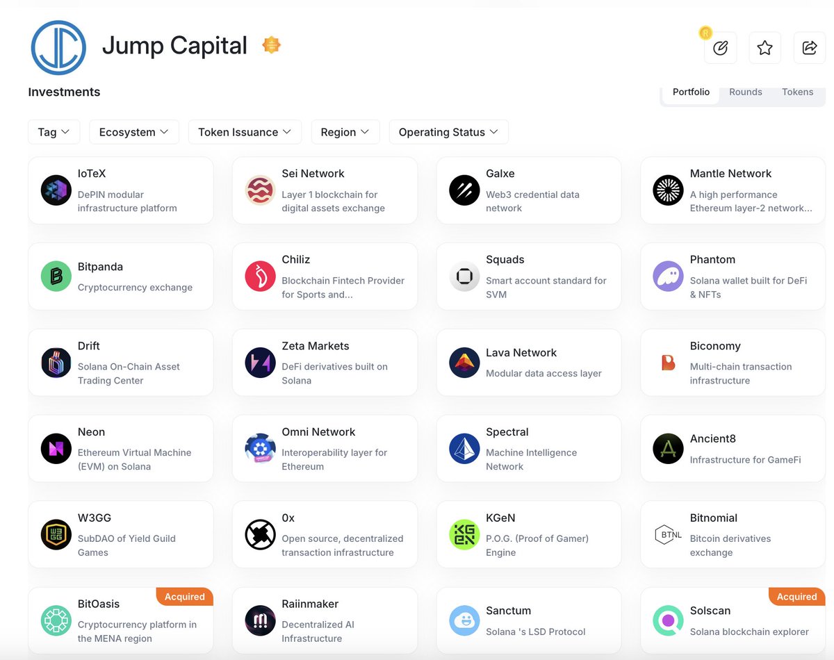 可以说 Jump Crypto 涵盖了几乎从投资、交易/做市、项目开发所有的环节,除了没开交易所,和交易相关的都涉及了。