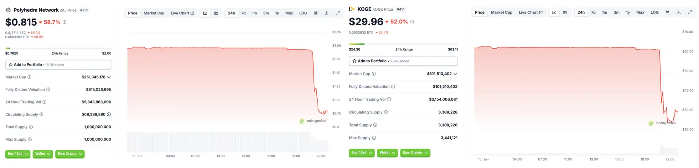 最终,这一结构性脆弱设计叠加 LP 套利、高杠杆合约仓位、无实际价值流入的高收益诱导,在短时间内演变为典型的流动性危机,KOGE 与 ZKJ 双双崩盘。