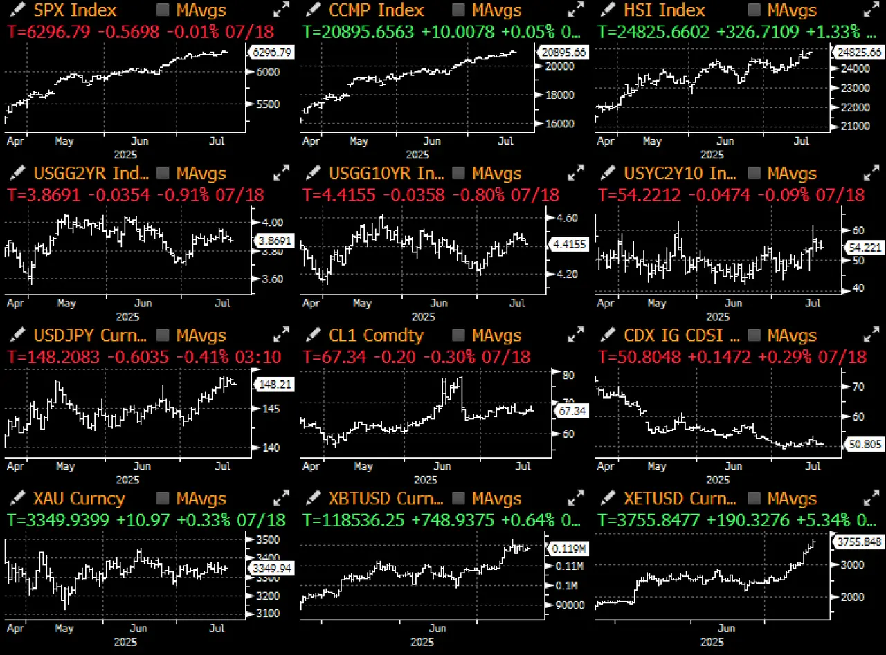 又是新的一周,又是新的历史高点。标普 500 指数周五再创历史新高,这是本周第三次、也是七月份第六次刷新纪录。市场继续无视持续的关税升级(对墨西哥和欧盟征收 30% 关税)、最新 CPI 资料中初现端倪的价格压力传导、以及以“正当理由”罢免美联储主席鲍威尔的最新闹剧。