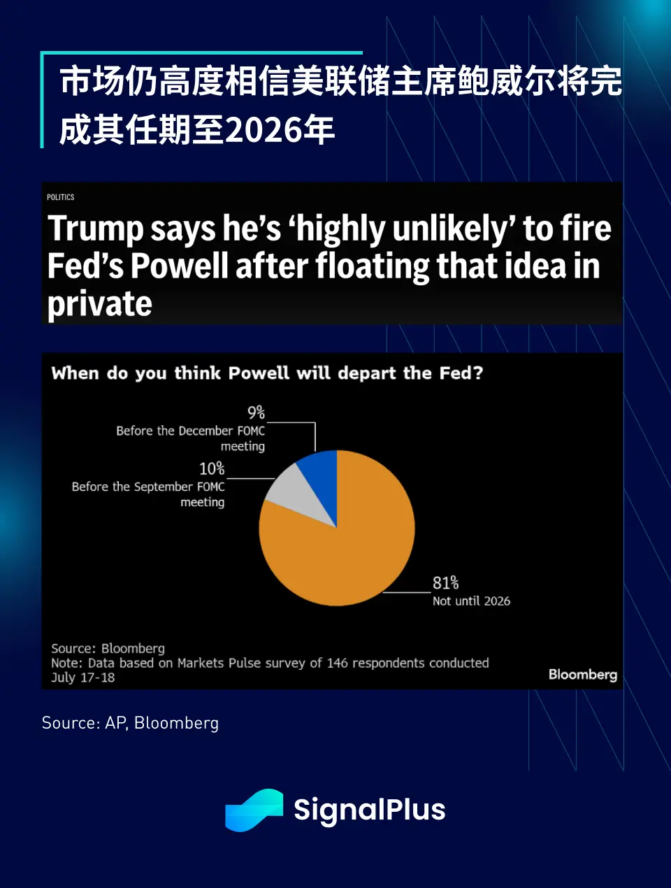 在泄露了这一荒谬说法后,特朗普很快收回了威胁,市场也压倒性地共识认为鲍威尔将完成其任期至 2026 年。