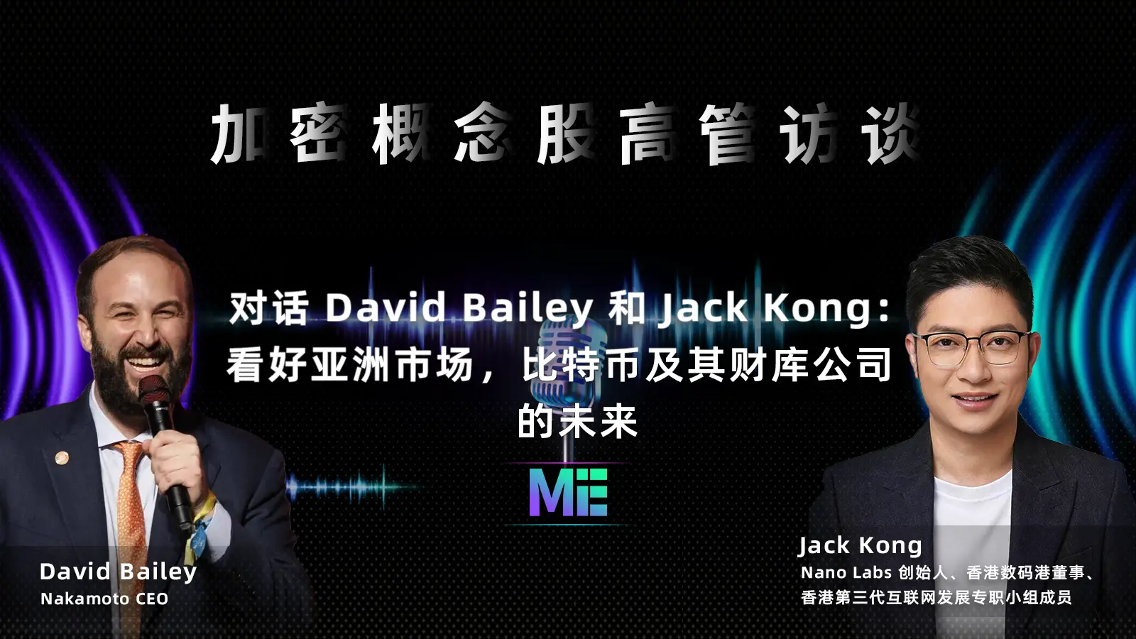 在比特币价格稳居 10 万美元之际,ME CEO Jessica 与 David Bailey 及 Nano Labs 创始人、香港数码港董事、香港第三代互联网发展专职小组成员 Jack Kong 进行了一场深入对话,探讨了 Nakamoto 的全球扩张路径、亚洲市场战略以及比特币财库模式的未来。